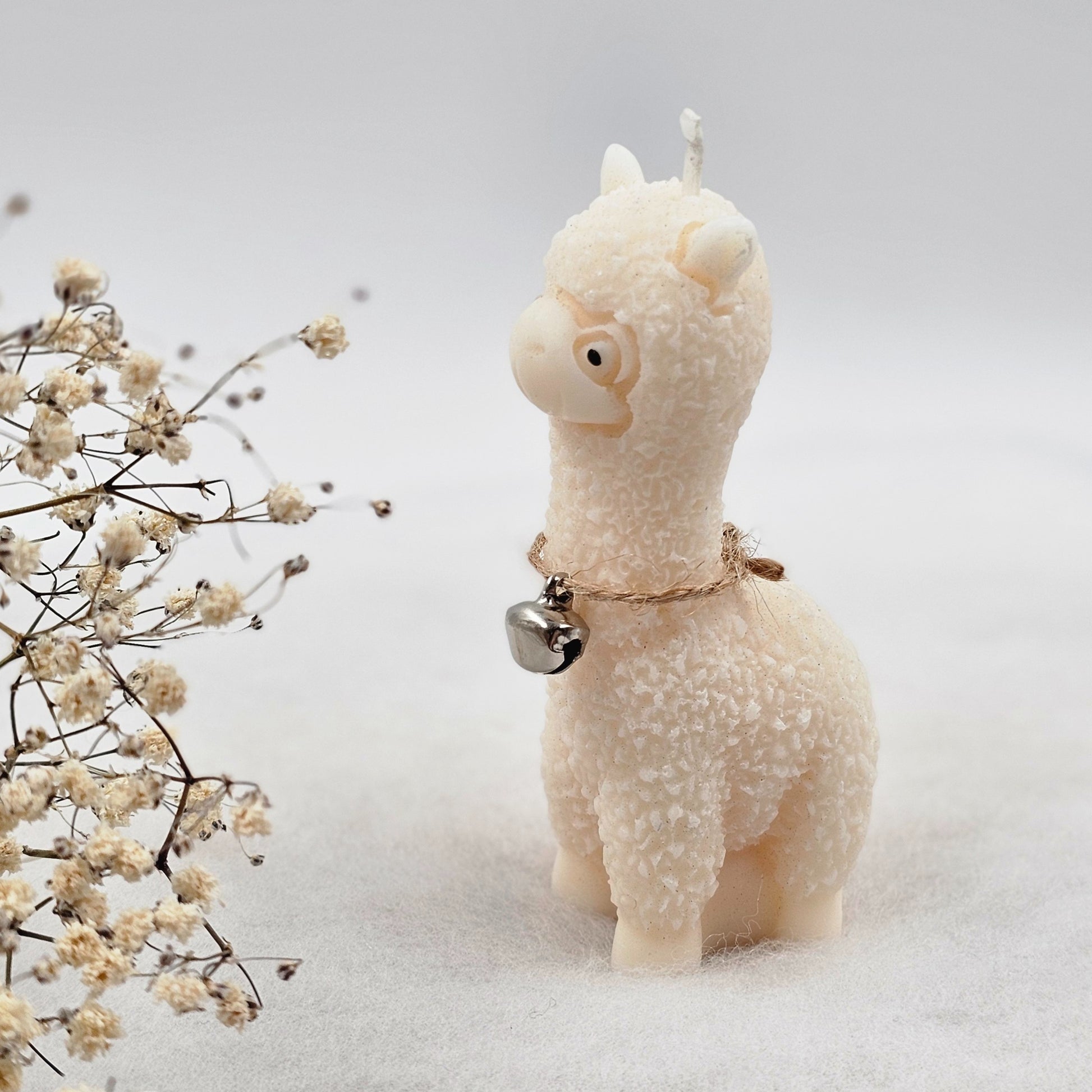 🕯️ Lama Kerze in Naturfarbe mit Glöckchen