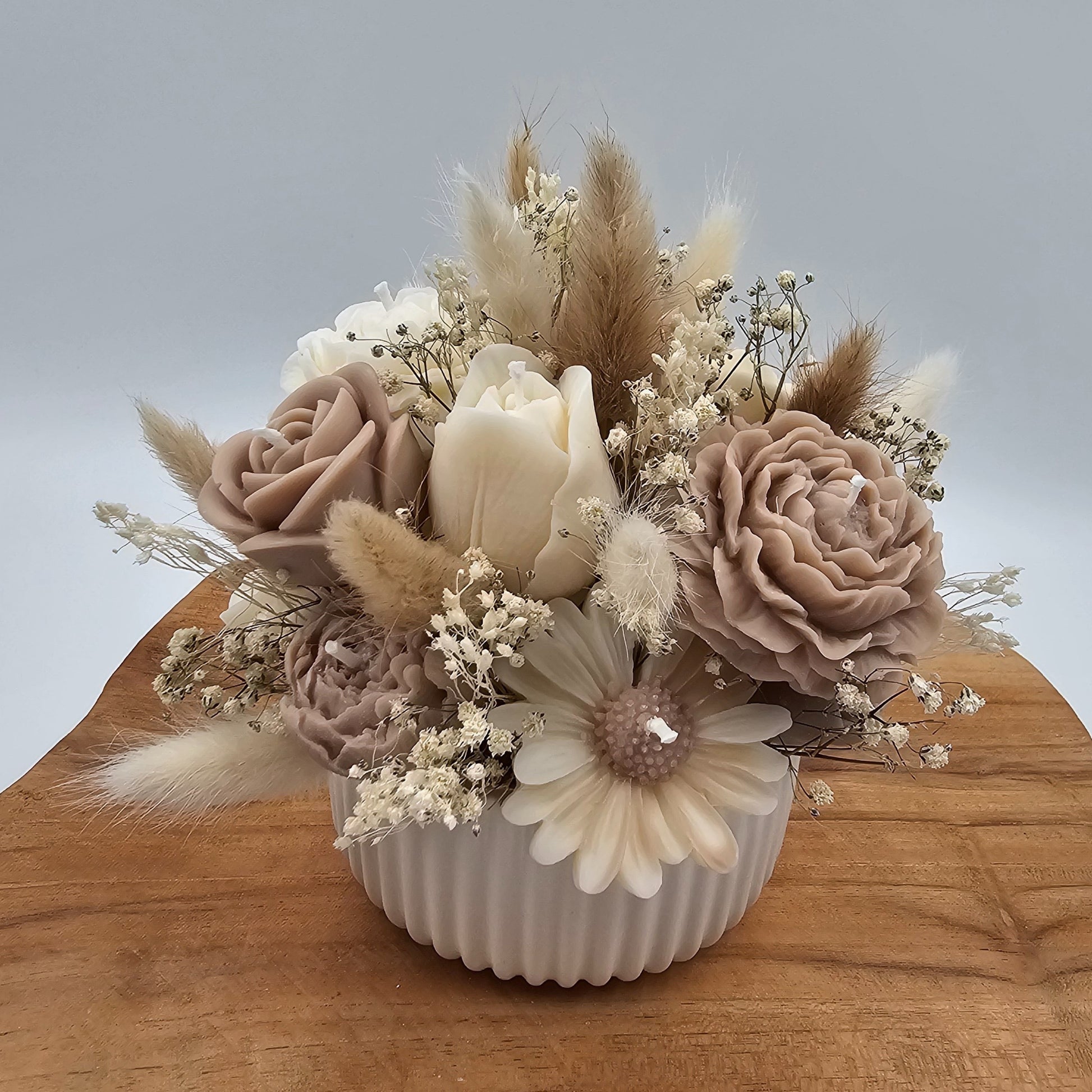 Kerzen-Blumenstrauß mit Duft in Weiß/Braun